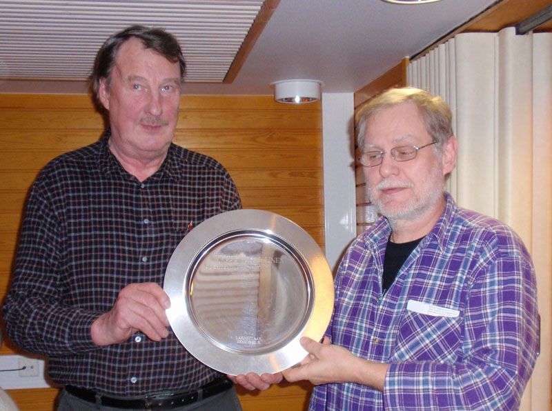 Seuran puheenjohtaja, Erkki Inkilä vasemmalla ja Jorma Anttonen ”Vuoden ESA:lainen ” 2012 valintuna.