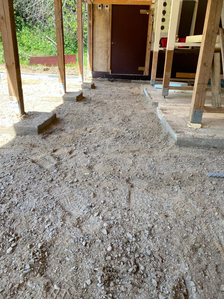 Torstaina saatiin pohjatyöt valmiiksi. Hiekkaa on siirretty pois ja reunalauta on asennettu. Työtä jatketaan todennäköisesti ensi viikolla, kun routaeristeet ja raudoitusverkko saapuvat. Lattian valupäiväa ei ole vielä sovittu.