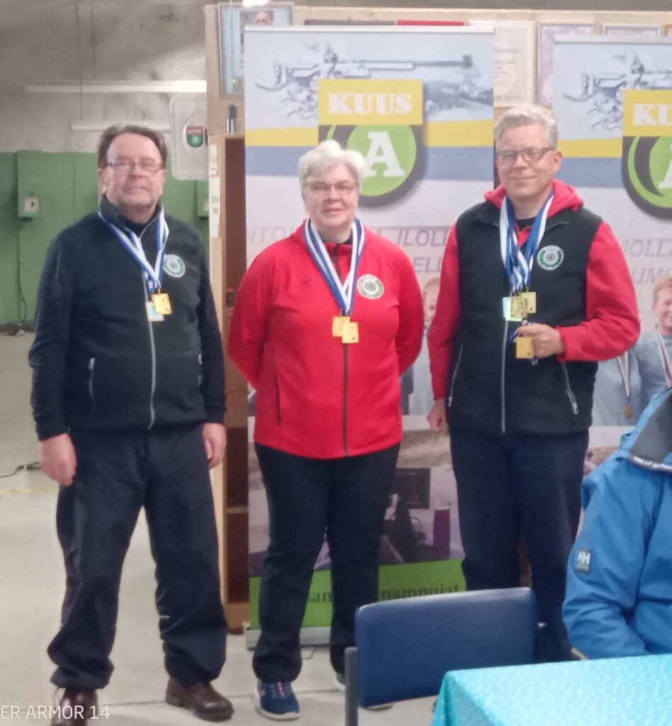 Etelä-Saimaan ampujille tukku aluemestaruuksia ilma-aseiden aluemestaruuskilpailuissa 28.2.-1.3.2026 Kuusankoskella. Ilmakiväärin aluemestariksi uudella alue-ennätyksellä 629,8 ampui Vertti Jauhiainen. Rune Tikander voitti M60-sarjan (388,7) ja Pekka Valtonen Y80-sarjan (367,7), joka on myös alue-ennätys. Y-sarjan joukkuekilpailussa ESA:n joukkue (Jauhiainen, Hertta Pekonen, Inka Raskila oli ykkönen tuloksella 1832,3.