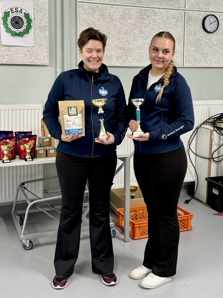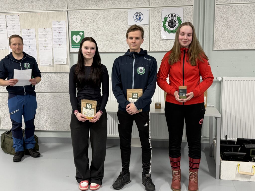 Kivääripuolella nähtiin ilahduttava onnistuminen, kun ESA:n Inka Raskila sijoittui superfinaalissa kolmanneksi. Sijoitus oli nuorelle ampujalle merkittävä saavutus ja osoitus hyvästä kunnosta. Erityisen mukavaa oli nähdä radalla myös seuran nuorinta kaartia, kuten Helmi Immonen (14HT) ja Kasper Kemppainen (M16), jotka toivat hienoa jatkuvuutta seuran toimintaan.